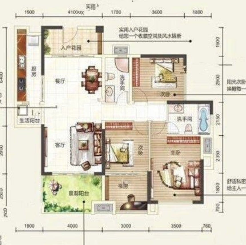 3+1室2厅2卫2阳台,房型正气,采光佳