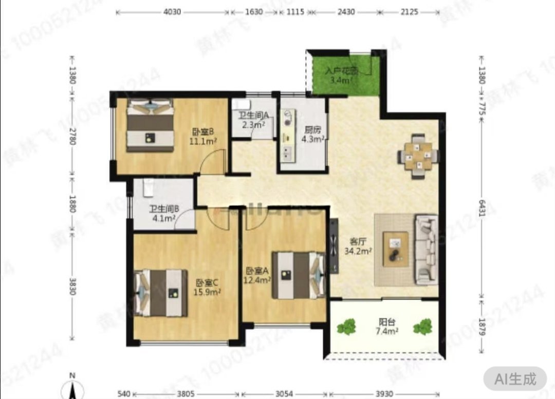 • 房屋户型3室2厅2卫