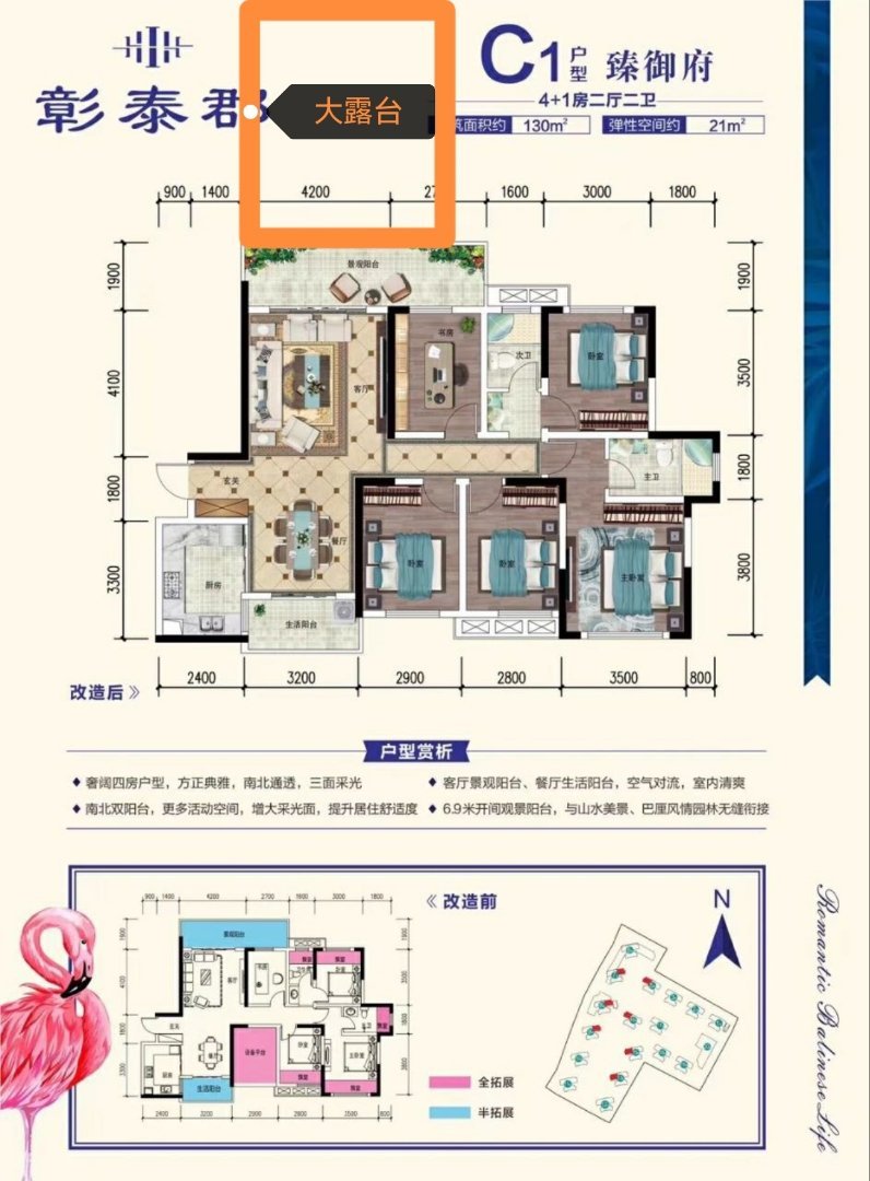 带130平大露台!带车位!5室2厅2卫2阳台,大户型