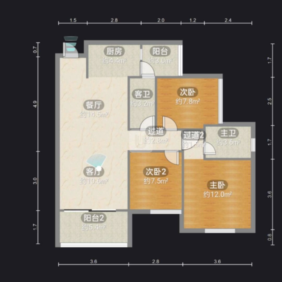 • 房屋户型3室2厅2卫